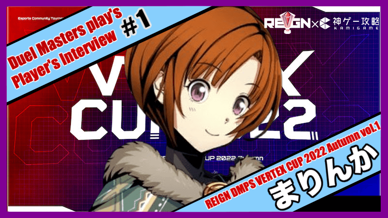 今回はデュエルマスターズプレイスの公認大会「REIGN DMPS VERTEX CUP 2022 Autumn vol.1」で優勝したプレイヤー「まりんか(音無スズカ)」さんにインタビューを実施!印象的な試合や普段のプレイングについて聞いたので参考にどうぞ!