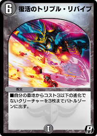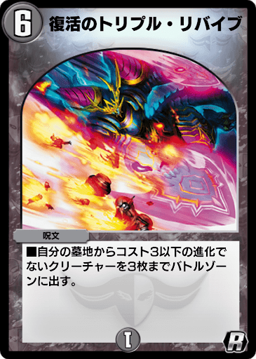 『デュエプレ(デュエマプレイス)』の「復活のトリプル・リバイブ」の評価と採用デッキについて紹介。カードの効果や特徴、生成・分解コスト、関連カードなども掲載しているため、カード生成の参考にどうぞ。