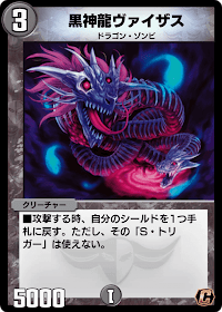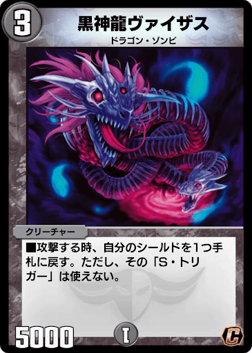 | ■攻撃する時、自分のシールドを1つ手札に戻す。ただし、その「S・トリガー」は使えない。 |