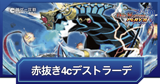 『デュエプレ(デュエマプレイス)』のNew Divisionにおける|赤抜き4cデストラーデデッキのレシピと回し方を紹介。キーカードとなるカードの紹介やデッキの特徴、序盤〜終盤までのデッキの回し方、マスター/レジェンド到達デッキ、デッキコードについて紹介しているため、ぜひ参考にどうぞ。