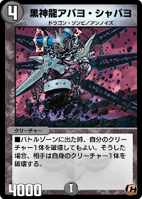 『デュエプレ(デュエマプレイス)』の「黒神龍アバヨ・シャバヨ」の評価と採用デッキについて紹介。カードの効果や特徴、生成・分解コスト、関連カードなども掲載しているため、カード生成の参考にどうぞ。