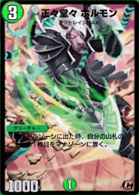 『デュエプレ(デュエマプレイス)』の「正々堂々 ホルモン(マキシム・ブロンズ ホルモン)」の評価と採用デッキについて紹介。カードの効果や特徴、生成・分解コスト、関連カードなども掲載しているため、カード生成の参考にどうぞ。