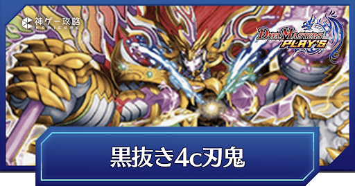『デュエプレ(デュエマプレイス)』のNew Divisionにおける|闇抜き4c刃鬼デッキのレシピと回し方を紹介。キーカードとなるカードの紹介やデッキの特徴、序盤〜終盤までのデッキの回し方、マスター/レジェンド到達デッキ、デッキコードについて紹介しているため、ぜひ参考にどうぞ。