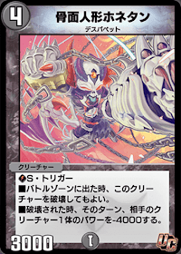 『デュエプレ(デュエマプレイス)』の「骨面人形ホネタン」の評価と採用デッキについて紹介。カードの効果や特徴、生成・分解コスト、関連カードなども掲載しているため、カード生成の参考にどうぞ。