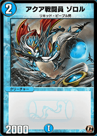 『デュエプレ(デュエマプレイス)』の「アクア戦闘員 ゾロル」の評価と採用デッキについて紹介。カードの効果や特徴、生成・分解コスト、関連カードなども掲載しているため、カード生成の参考にどうぞ。
