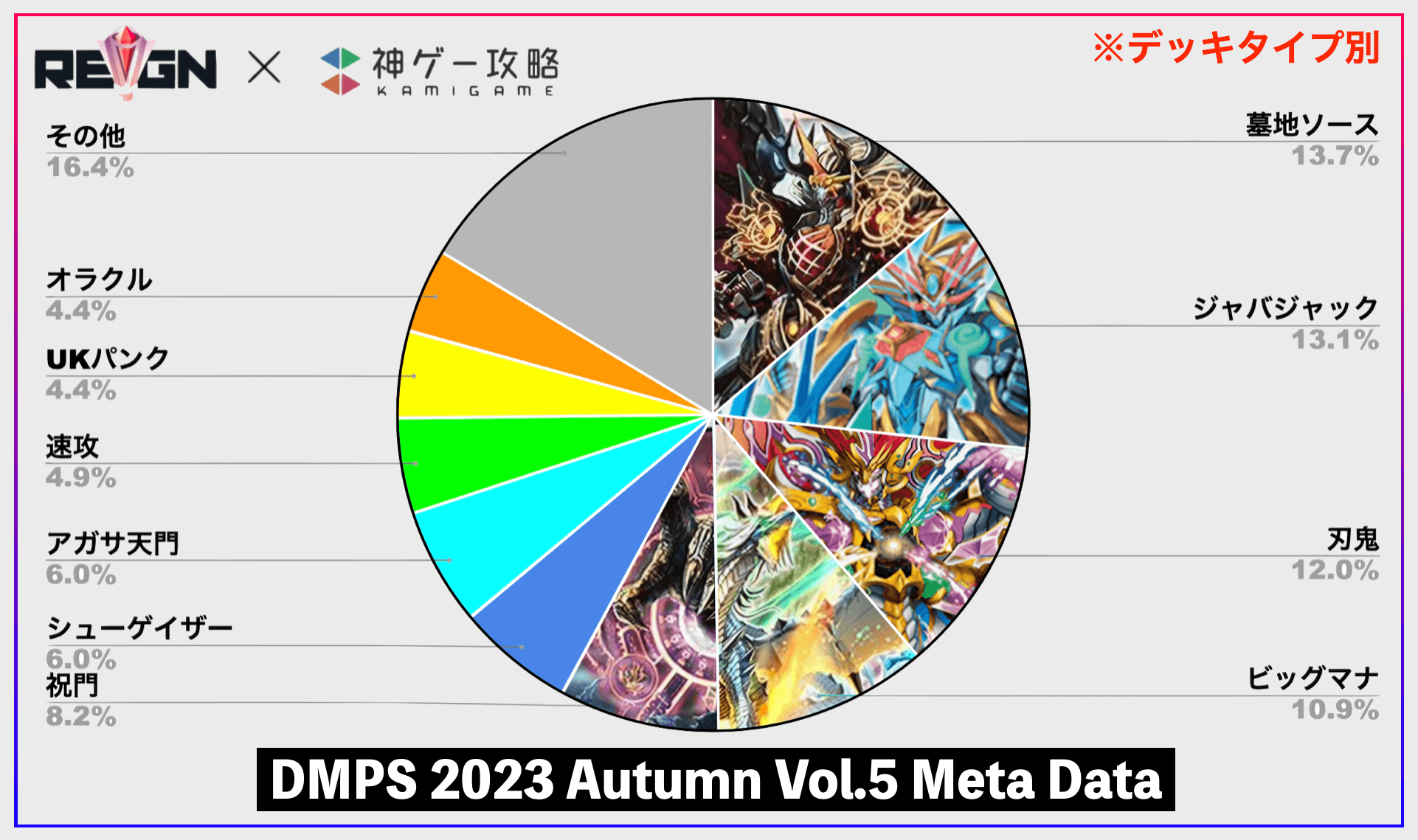 『デュエプレ(デュエマプレイス)』の2023年9月11日に開催された『REIGN DMPS VERTEX CUP 2023 Autumn vol.5』の大会参加者デッキのメタデータを掲載。大会の優勝デッキや環境考察も掲載しているので、ぜひ参考にどうぞ。