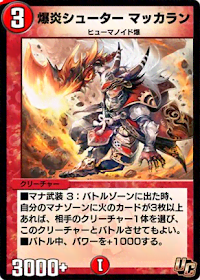 『デュエプレ(デュエマプレイス)』の「爆炎シューター マッカラン」の評価と採用デッキについて紹介。カードの効果や特徴、生成・分解コスト、関連カードなども掲載しているため、カード生成の参考にどうぞ。