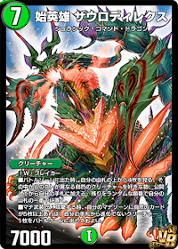 『デュエプレ(デュエマプレイス)』の「始英雄 ザウロディレクス」の評価と採用デッキについて紹介。カードの効果や特徴、生成・分解コスト、関連カードなども掲載しているため、カード生成の参考にどうぞ。