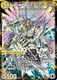 | ■これを装備したクリーチャーが攻撃する時、相手のクリーチャー1体をタップしてもよい。 龍解:自分のターン終了時、これを装備したクリーチャーがタップされていれば、このドラグハートを《聖槍の精霊龍 ダルク・アン・シエル》のほうに裏返す。 |