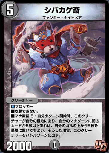 『デュエプレ(デュエマプレイス)』の「シバカゲ斎」の評価と採用デッキについて紹介。カードの効果や特徴、生成・分解コスト、関連カードなども掲載しているため、カード生成の参考にどうぞ。