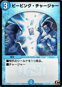 『デュエプレ(デュエマプレイス)』の「ピーピング・チャージャー」の評価と採用デッキについて紹介。カードの効果や特徴、生成・分解コスト、関連カードなども掲載しているため、カード生成の参考にどうぞ。