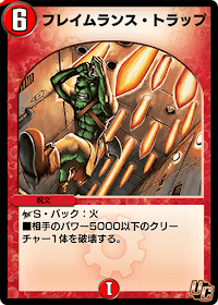 『デュエプレ(デュエマプレイス)』の「フレイムランス・トラップ」の評価と採用デッキについて紹介。カードの効果や特徴、生成・分解コスト、関連カードなども掲載しているため、カード生成の参考にどうぞ。