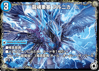 | ■進化-クリーチャー ■W・ブレイカー ■バトルゾーンに出た時、このクリーチャーと名前に《龍魂》とあるカード以外の自分のカードをすべて破壊する。こうして破壊したドラグハート、ドラゴンまたはドラグナー1枚につき、自分の超次元ゾーンからコスト3以下のドラグハートをバトルゾーンに出してもよい。(その中のドラグハート・ウエポンはすべて、このクリーチャーに装備する) |