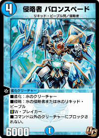 | ■進化:水のクリーチャー ■侵略:水の侵略者または水のリキッド・ピープル ■W・ブレイカー ■コマンド以外のクリーチャーにブロックされない。 |