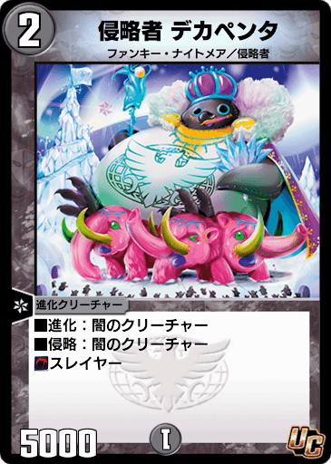 『デュエプレ(デュエマプレイス)』の「侵略者 デカペンタ」の評価と採用デッキについて紹介。カードの効果や特徴、生成・分解コスト、関連カードなども掲載しているため、カード生成の参考にどうぞ。