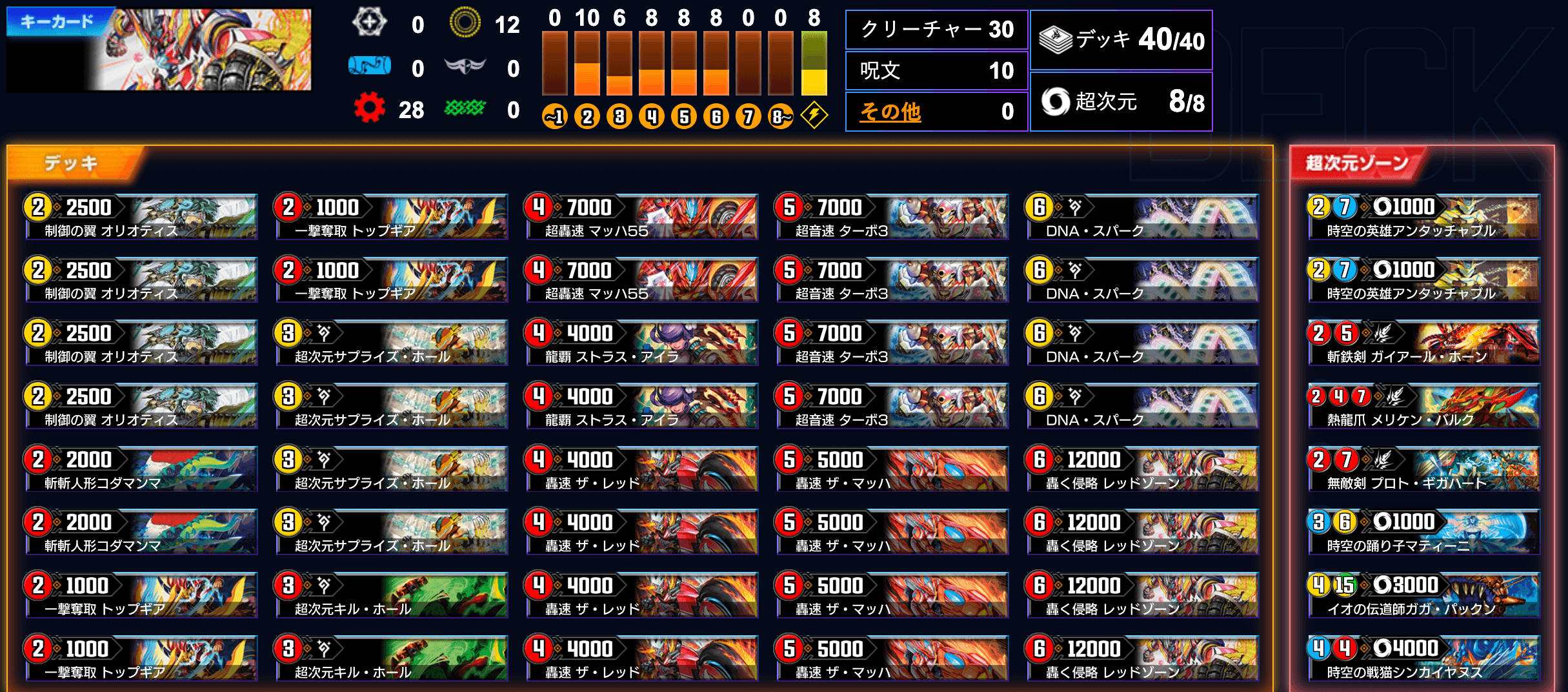 「光火レッドゾーン」では、《龍覇 ストラス・アイラ》の採用が目立っていた。《メリケン・バルク》を装備し、「光単サザン連鎖」などの小型獣を意識した結果だろう。他にも《シンカイヤヌス》と組み合わせ、《ガイアール・ホーン》の装備ですぐさま《レッドゾーン》の侵略元になれるなど、器用な働きを見せてくれる。
