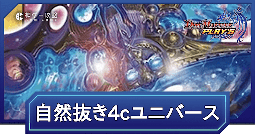 『デュエプレ(デュエマプレイス)』のNew Divisionにおけるクロニクル環境|自然抜き4cユニバースデッキのレシピと回し方を紹介。キーカードとなるカードの紹介やデッキの特徴、序盤〜終盤までのデッキの回し方、マスター/レジェンド到達デッキ、デッキコードについて紹介しているため、ぜひ参考にどうぞ。