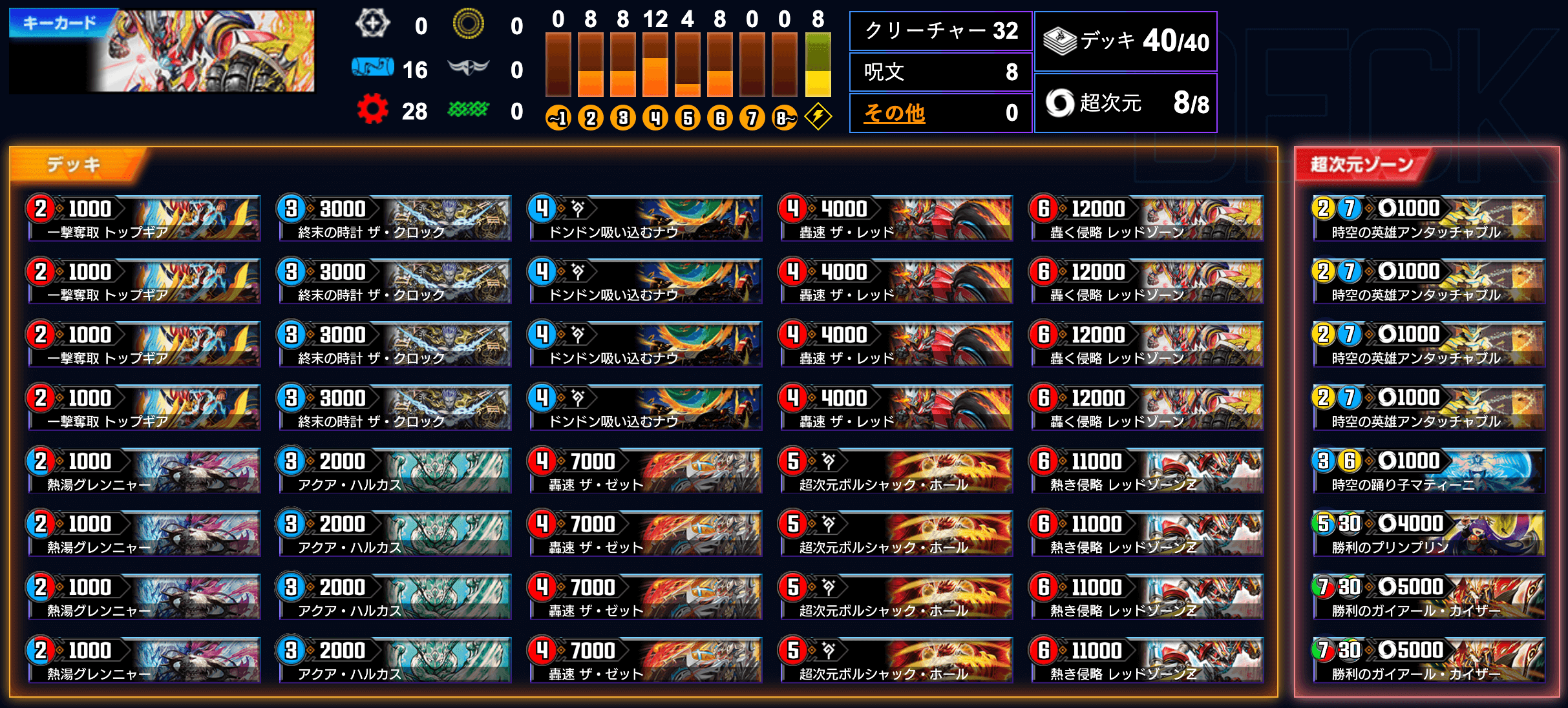 クロニクル環境開始以降、トップTierに君臨していた「ゼロ・フェニックス」だが、不利対面の「モルトNEXT」の増加や、「ニューゲイズ」の《タイタニス》増量。また、本来有利対面であった「レッドゾーン」では速度特化の火単や、手札を枯らしづらく《アンタッチャブル》の運用も想定した水火型へシフトしたことでそれほど有利対面とも言えなくなってきている現状だ。