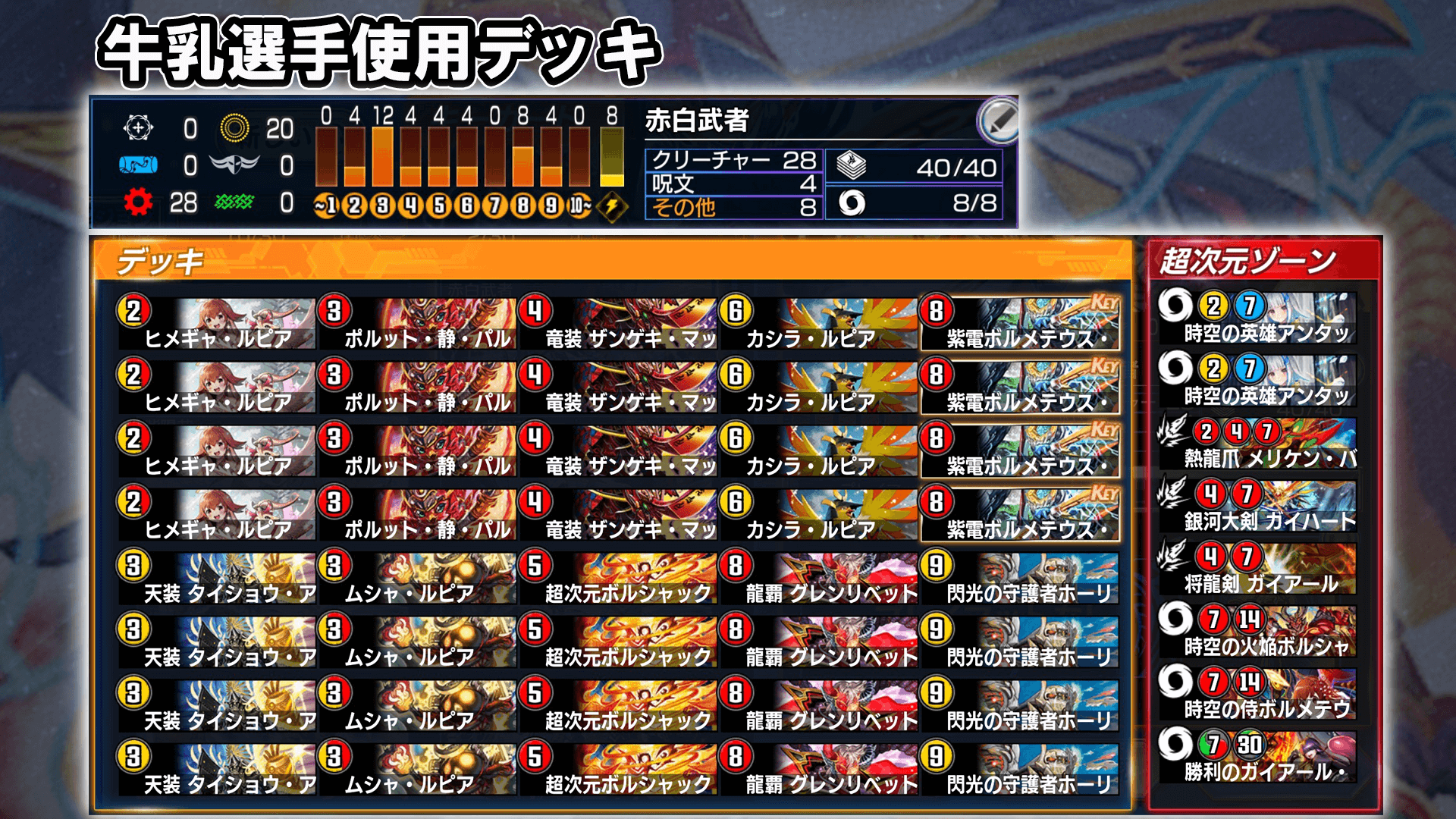 | とにかくプレイヤーの実力が出やすいデッキを選ぶというのを大会デッキを考える上で意識しています。 |
