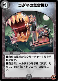『デュエプレ(デュエマプレイス)』の「コダマの気合掘り」の評価と採用デッキについて紹介。カードの効果や特徴、生成・分解コスト、関連カードなども掲載しているため、カード生成の参考にどうぞ。