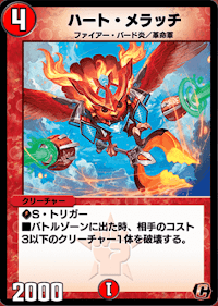 『デュエプレ(デュエマプレイス)』の「ハート・メラッチ」の評価と採用デッキについて紹介。カードの効果や特徴、生成・分解コスト、関連カードなども掲載しているため、カード生成の参考にどうぞ。