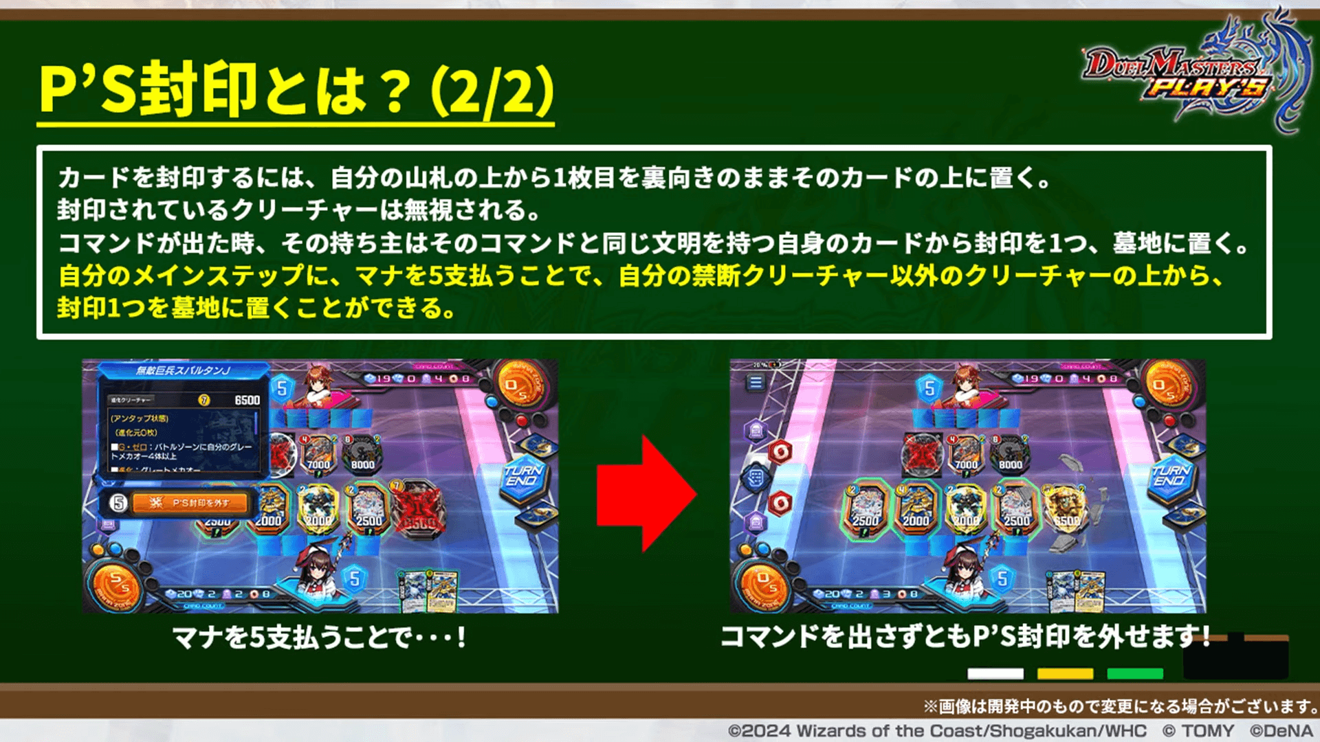 自分の指定されたクリーチャー1体の上に置いてもよい。(クリーチャーが下にあれば、これをNEO進化クリーチャーとして扱う。つまり、クリーチャーとして出すか、NEO進化クリーチャーとして出すかをバトルゾーンに出す時に選択できる。NEO進化クリーチャーとして出した場合は、通常の進化クリーチャー同様召喚酔いしない。)