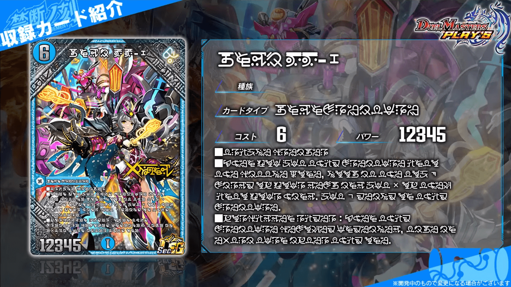 レアリティ:VRコスト:6/パワー:6000文明:水種族:ソニック・コマンドマスター・イニシャルズカード効果 |