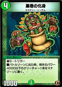 | ■S・トリガー ■バトルゾーンに出た時、相手のパワー4000以下のクリーチャー1体をマナゾーンに置く。 |