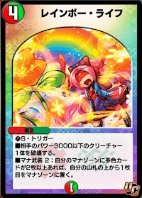 『デュエプレ(デュエマプレイス)』の「レインボー・ライフ」の評価と採用デッキについて紹介。カードの効果や特徴、生成・分解コスト、関連カードなども掲載しているため、カード生成の参考にどうぞ。