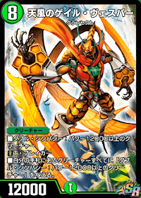 《天風のゲイル・ヴェスパー》は、ダブル・シンパシーでパワー12000のクリーチャーの数だけ、コストが2下がるコスト軽減効果を持ったグランセクトだ。序盤からでも展開しやすい《デデカブラ》《デスマッチ・ビートル》といった軽量な高パワークリーチャーを活用すれば早期召喚が狙えるため、高いコストパフォーマンスを発揮できる。