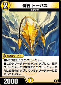 『デュエプレ(デュエマプレイス)』の「奇石 トーパズ」の評価と採用デッキについて紹介。カードの効果や特徴、生成・分解コスト、関連カードなども掲載しているため、カード生成の参考にどうぞ。
