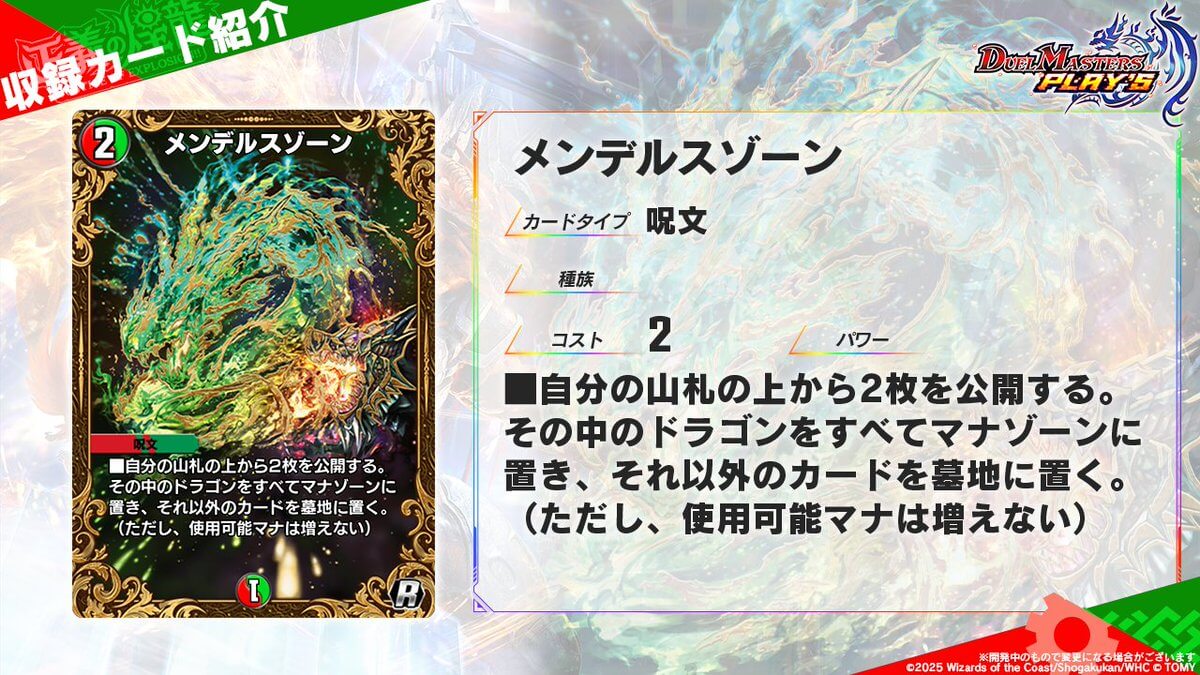 レアリティ:UCカードタイプ:呪文コスト:1パワー:-文明:自然種族:-効果テキスト|画像拡大 |