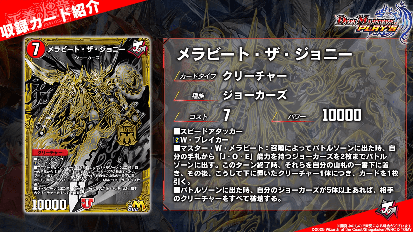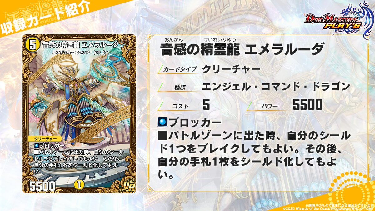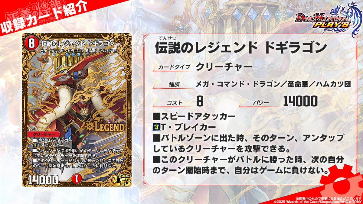 レアリティ:Mカードタイプ:クリーチャーコスト:7パワー:11000文明:光種族:マスター・ドラゴンメタリカ効果テキスト|画像拡大 |