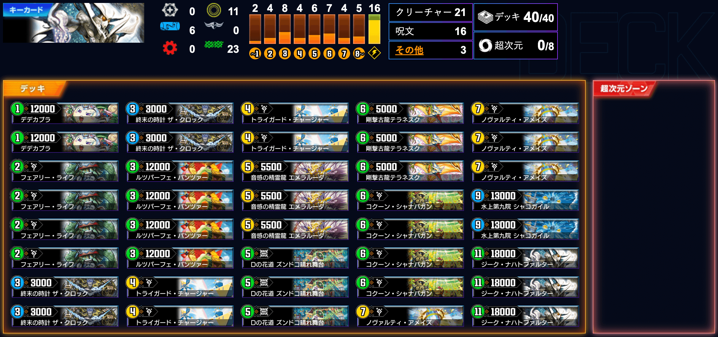 拡大中盤は《トライガード・チャージャー》《エメラルーダ》で、S・トリガーをシールドに仕込み、耐久を狙う。
