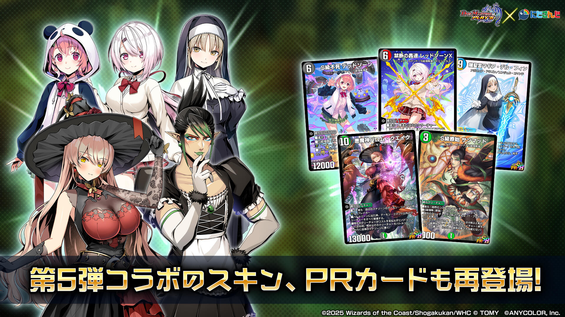 デュエプレとにじさんじのコラボは、今回で6回目となる。前回の第5回コラボでは、「シスター・クレア」「ニュイ・ソシエール」「笹木 咲」「椎名 唯華」「花畑 チャイカ」の5名が登場しており、コラボカードなども実装された。