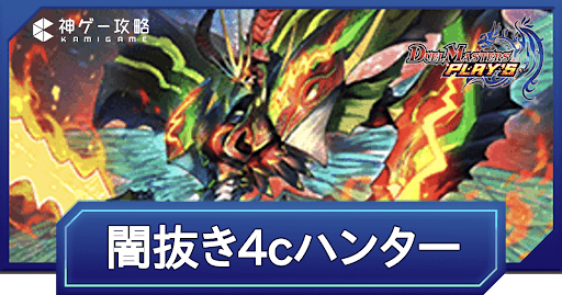 『デュエプレ(デュエマプレイス)』のAll Divisionにおける第32弾環境|闇抜き4cハンターデッキのレシピと回し方を紹介。キーカードとなるカードの紹介やデッキの特徴、序盤〜終盤までのデッキの回し方、マスター・レジェンド到達デッキ、デッキコードについて紹介しているため、ぜひ参考にどうぞ。