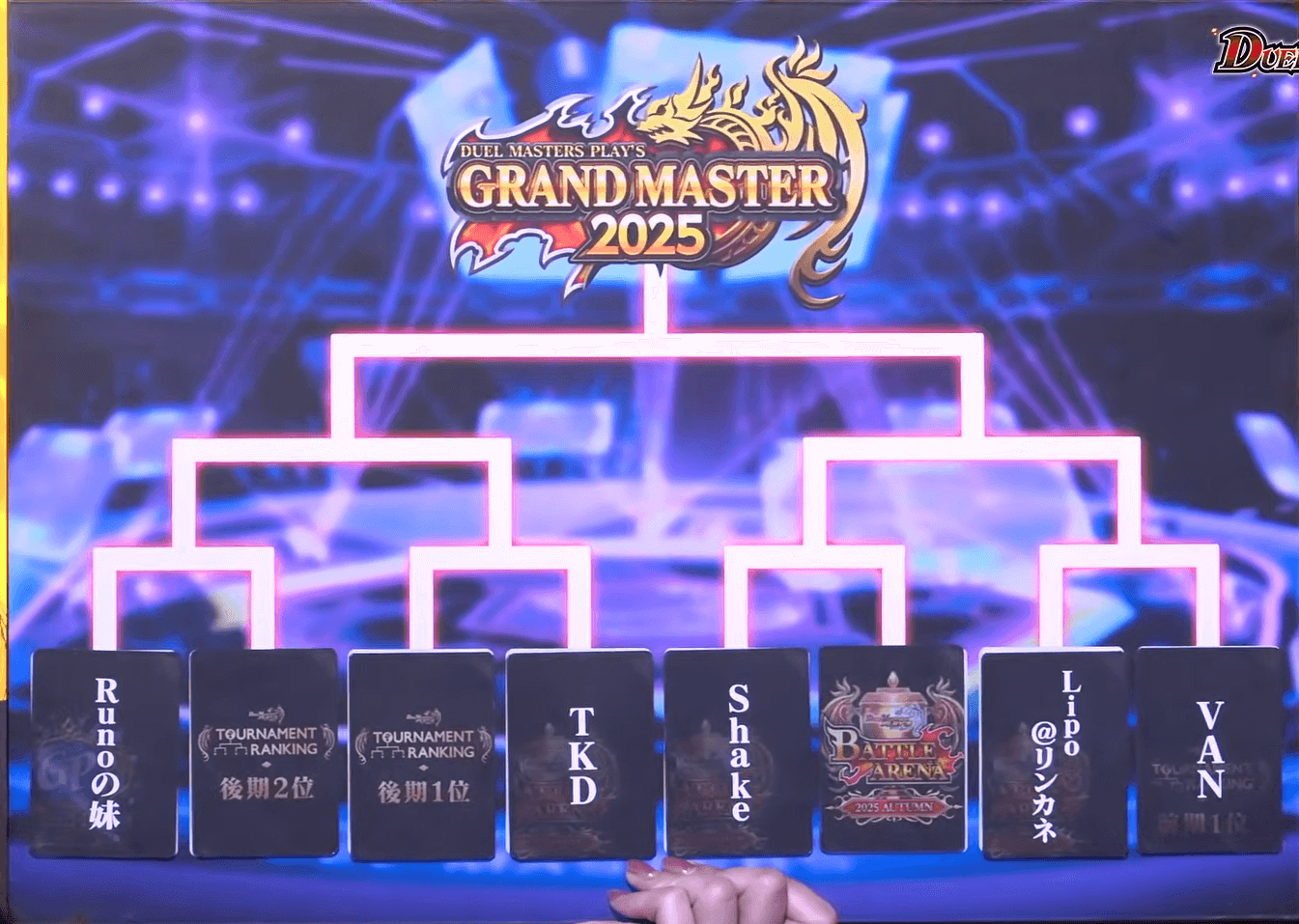 バトルアリーナとはデュエプレ公式運営が主催する賞金制大会だ。本大会はアプリ内開催の一次予選、オンライン開催の二次予選、スタジオオフライン開催の決勝ラウンドの3部構成となっている。