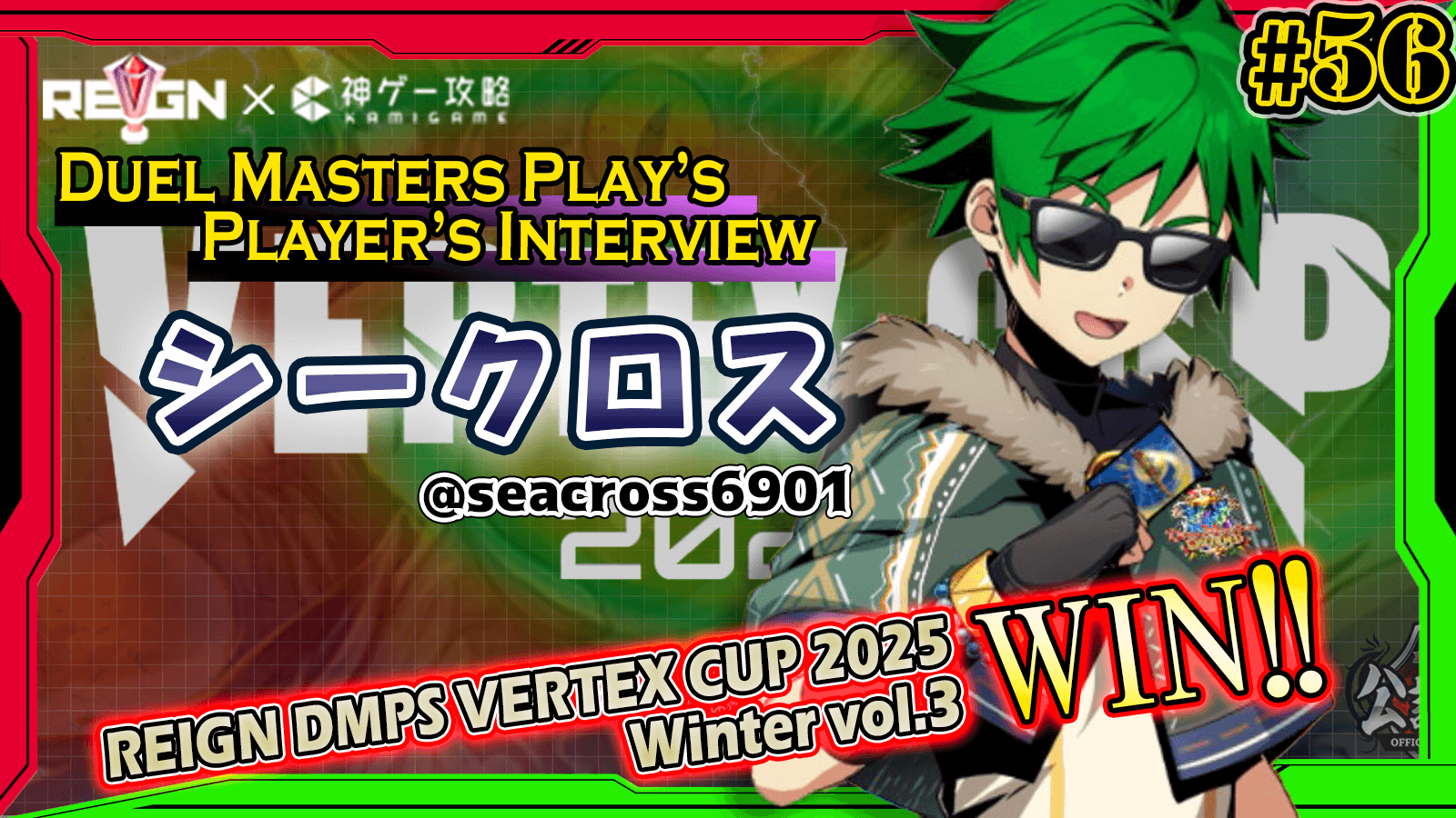今回はデュエルマスターズプレイスの公認大会「REIGN DMPS VERTEX CUP 2025 Winter vol.3」で優勝したプレイヤー「シークロス」選手にインタビューを実施!印象的な試合や普段のプレイングについて聞いたので参考にどうぞ!