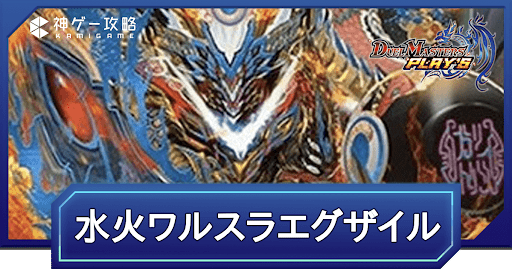 『デュエプレ(デュエマプレイス)』のNew Divisionにおける第33弾環境|水火ワルスラエグザイルデッキのレシピと回し方を紹介。キーカードとなるカードの紹介やデッキの特徴、序盤〜終盤までのデッキの回し方、マスター/レジェンド到達デッキ、デッキコードについて紹介しているため、ぜひ参考にどうぞ。