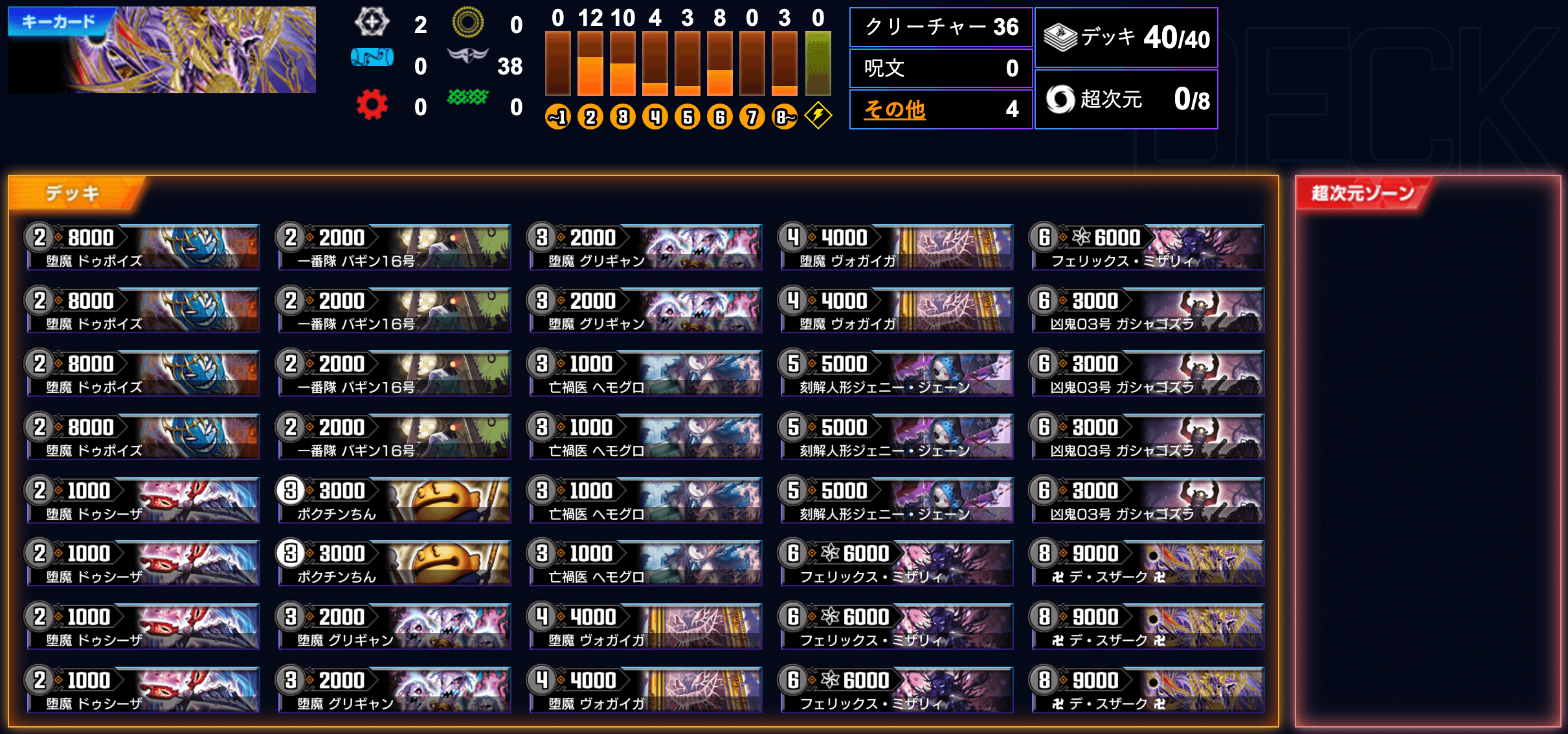 拡大墓地リソースが溜まった終盤は、《フェリックス・ミザリィ》《ガシャゴズラ》の動きで盤面を構築。《ヘモグロ》《ドゥポイズ》を活用し、相手にできるだけシールドリソースを与えずに攻めていこう。