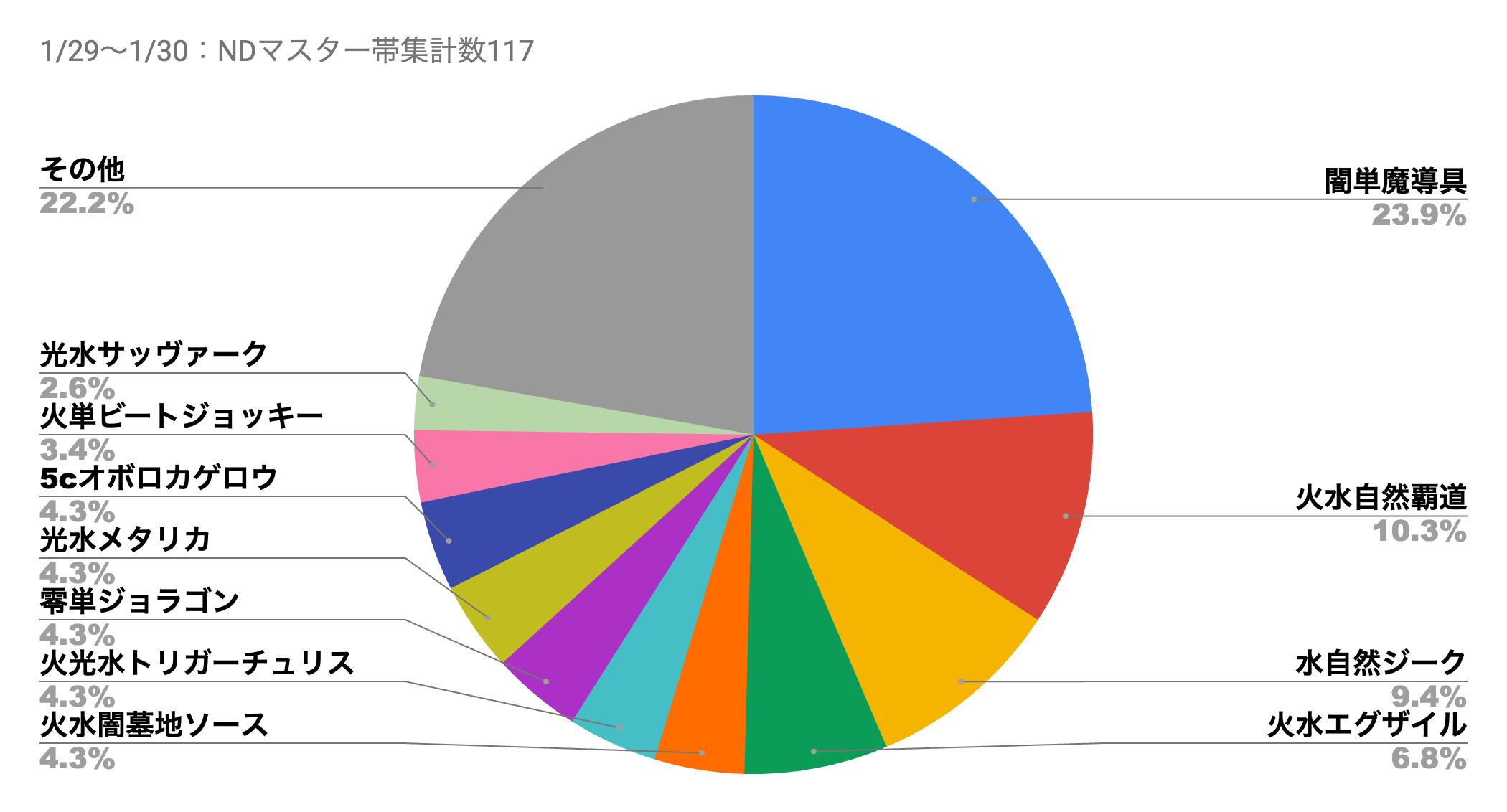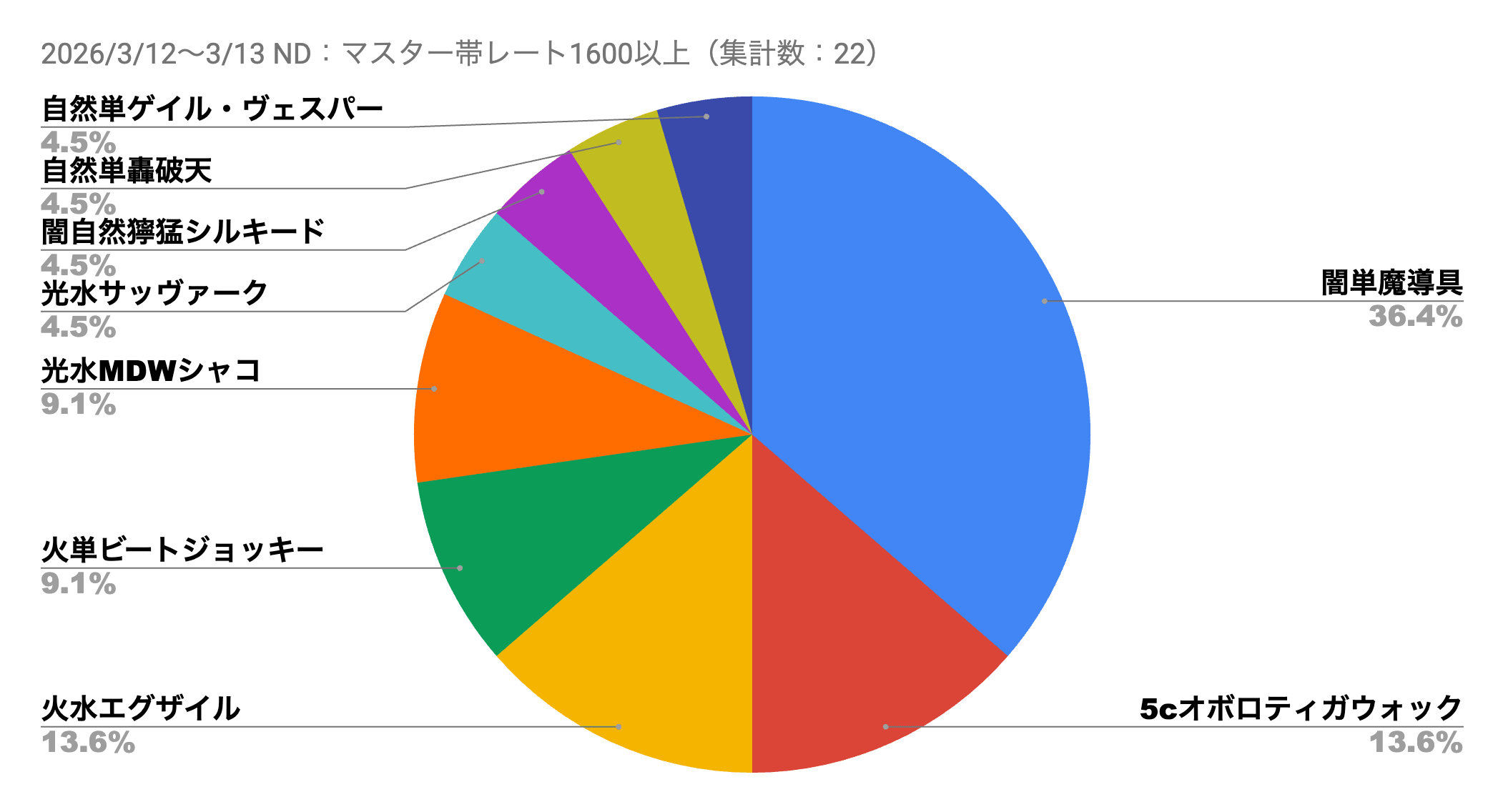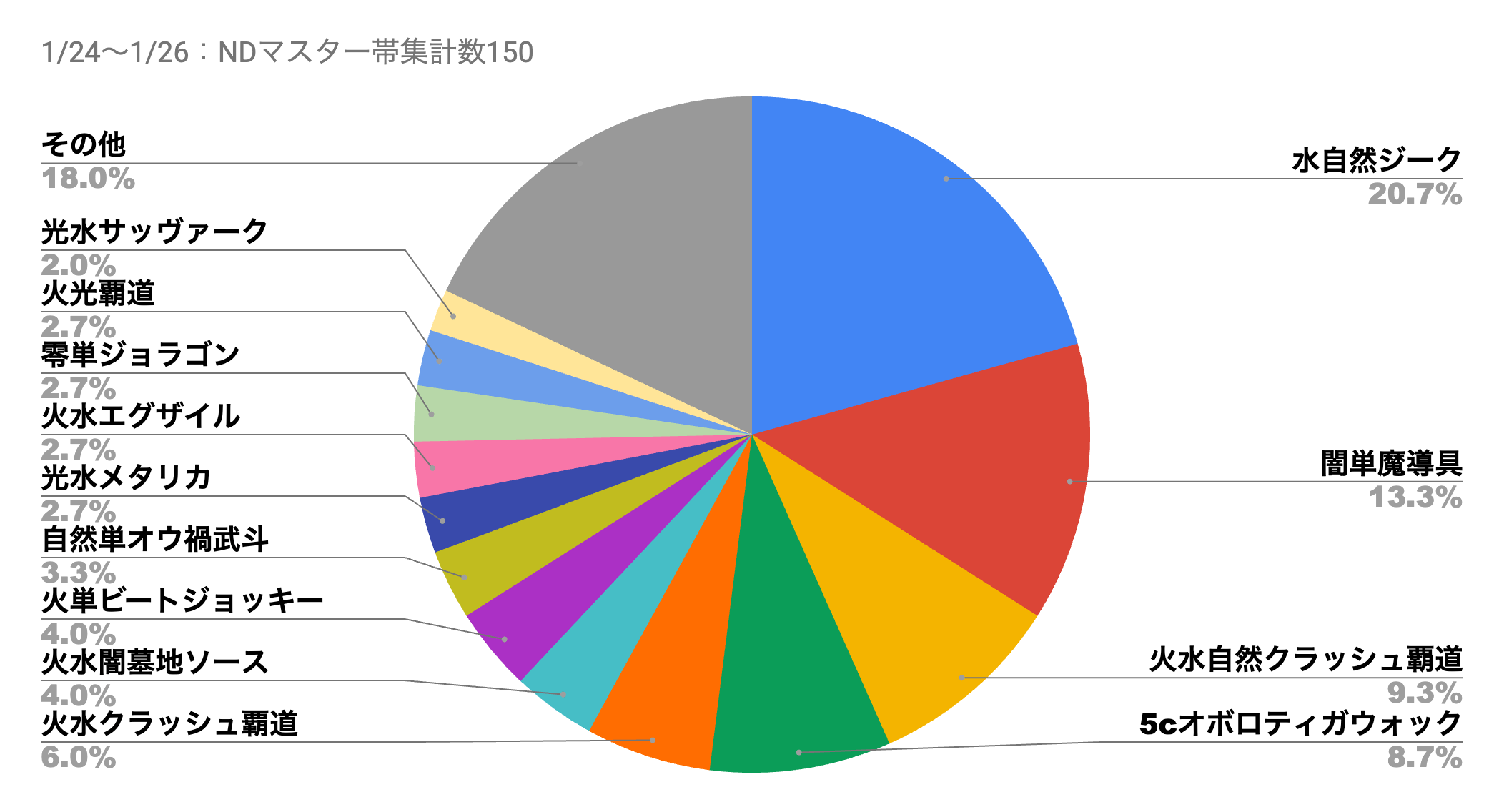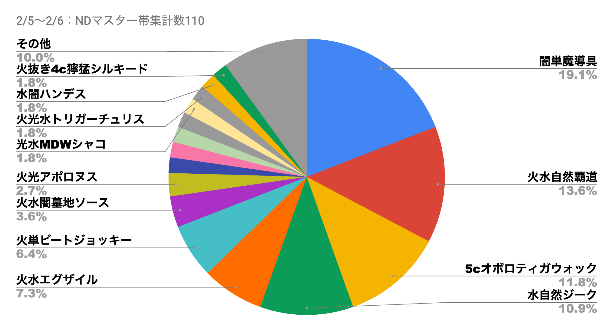 「闇単魔導具」の使用率が膨れ上がっていた前回のメタデータから変化し、再び「火水自然覇道」「水自然ジーク」の使用率が回復。加えて「5cオボロティガウォック」が、「火水自然覇道」の使用率に迫ってきている。《クラッシュ”覇道”》を上手く扱えるかつ、環境に対して高い対応力を持つ特性が注目された形だ。