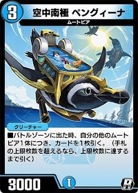 『デュエプレ(デュエマプレイス)』の「空中南極 ペングィーナ」の評価と採用デッキについて紹介。カードの効果や特徴、生成・分解コスト、関連カードなども掲載しているため、カード生成の参考にどうぞ。