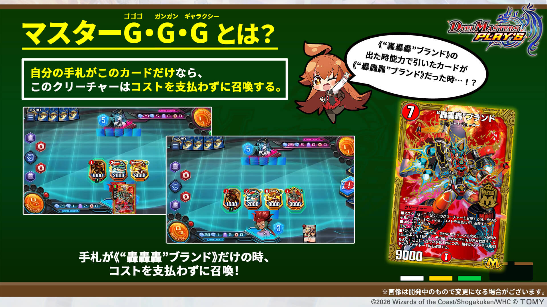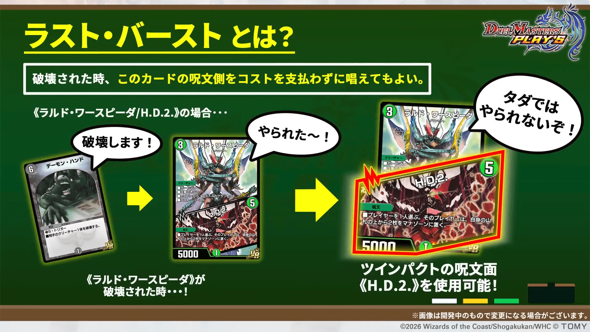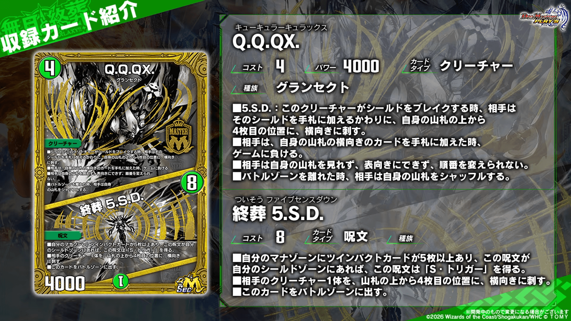 レアリティ:SRカードタイプ:クリーチャー/呪文コスト:7/3パワー:7777/-文明:零種族:ジョーカーズ-効果テキスト|画像拡大 |