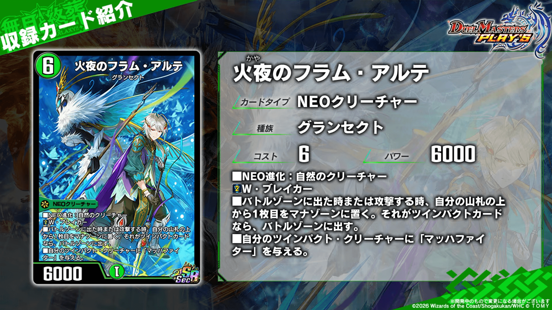 レアリティ:UCカードタイプ:NEOクリーチャーコスト:6パワー:6500文明:光種族:メタリカ効果テキスト|画像拡大 |