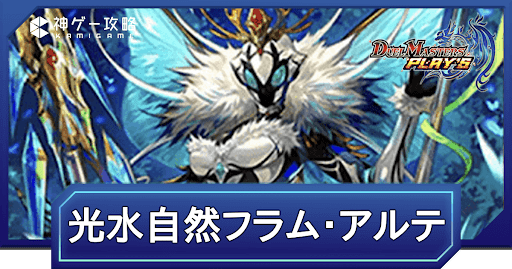 『デュエプレ(デュエマプレイス)』のNew Divisionにおける第35弾環境|光水自然フラム・アルテ(トリーヴァフラム・アルテ)デッキのレシピと回し方を紹介。キーカードとなるカードの紹介やデッキの特徴、序盤〜終盤までのデッキの回し方、マスター/レジェンド到達デッキ、デッキコードについて紹介しているため、ぜひ参考にどうぞ。