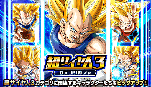 「超サイヤ人3」カテゴリに属すキャラがピックアップされた特別なガチャ。極限Zバトルで活躍できるぞ!