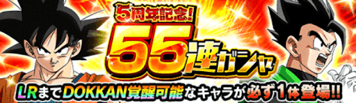 ドッカンバトル(ドカバト)のガチャ「5周年記念!55連ガシャ」のガチャシミュレーター。ドッカンバトルでガチャを引く前の運試しや、狙いのキャラを引ける確率の参考にしよう!