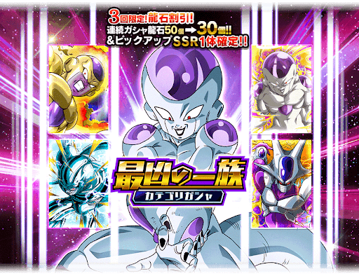 「最凶の一族」カテゴリガチャは、現環境でも使っていけるキャラが3体程ピックアップされているため、龍石に余裕がある場合は回すのをおすすめできる。もちろん、フリーザ達を運用できるリーダーキャラを所持しているのが前提条件ではある。