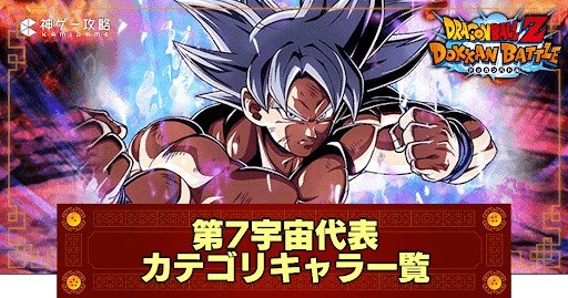 『ドッカンバトル(ドカバト)』のカテゴリ「第7宇宙代表」に属しているキャラクターをまとめている。カテゴリはドッカンバトルにおいて非常に重要なので、しっかりチェックしてパーティ編成や高難易度攻略に役立てよう!