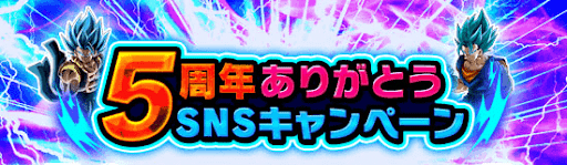 5周年ありがとうキャンペーンは、ドッカンバトル公式ツイッターを使ったユーザー参加型のキャンペーンである。出題された問題を全ユーザーと協力して達成することで、豪華なアイテムが報酬として獲得できる。